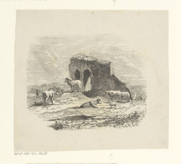 Auguste Raffet created "Militairen binnen bastion Toledo" in 1832, and this artwork currently resides in the Rijksmuseum. Immediately, the intricate detail of the etching draws you in, a stark monochrome palette setting a somber tone. The composition is a deep, receding view into the heart of the bastion. Raffet masterfully uses line and shadow to create depth, leading the eye through a carefully constructed space filled with soldiers and the paraphernalia of war. The lines are dense and crosshatched in the foreground, giving way to a lighter touch further back, which suggests distance and the vastness of the military operation. Here, the linear perspective isn't just a technique for creating realism. It serves to draw us, the viewers, into the scene, making us implicit witnesses to the military endeavor. The interplay of light and shadow within the bastion suggests not only the physical structure but also the psychological dimensions of conflict – the known and the unknown, the visible and the hidden. In this way, Raffet invites us to consider the complex interplay of observation and participation.