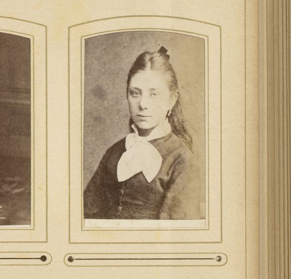 Curator: Here we have a portrait from the late 19th century, made between 1879 and 1887. The artist is Albert Greiner. The piece is simply titled, "Portret van een vrouw met witte muts," or "Portrait of a Woman with a White Bonnet." It is currently held here at the Rijksmuseum. Editor: Immediately, I'm drawn to the stillness of the figure, which is heightened by the limited tonal range. It creates a sense of quiet dignity, almost an iconic representation rather than an individual. Curator: It’s an interesting tension, isn't it? The softness of the charcoal aims for realism, but the very material suggests something reproducible. Greiner was working at a time when photography was booming. How does portraiture function then? What kind of labor goes into it? Editor: That’s a fascinating question. Visually, the contrasting textures in the piece intrigue me – the smooth, almost porcelain quality of her face against the rougher hatching defining the fabric of her dress and the bonnet itself. I find a study in contrasts there. Curator: And look at the detail in that bonnet. It’s not just a bit of fabric; it's lace, intricately rendered. Greiner, by focusing on it, is drawing our attention to the work, perhaps the labour of women in that era. The necklace also suggests status and, by extension, the networks of commerce and consumption that shaped her life. Editor: Semiotically speaking, those elements communicate specific messages of social standing, piety perhaps, and regional identity given that distinctive head covering. The dark and light create a somber mood but are ultimately about the beauty of light on a woman's features. Curator: Exactly! So the piece functions as an artwork, a status symbol, and a historical document simultaneously. Looking at the means of production gives the whole thing added value. Editor: Absolutely, Albert Greiner's choices highlight visual structures as well as historical ones and make us consider what photography means. I’ve found it valuable to decode the pictorial language, appreciating the formal decisions at play. Curator: For me, understanding the socioeconomic conditions really enhances my engagement with such artwork. It prompts reflections about the people, tools, and forces required in image making of this period.
