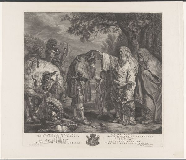 Jean Daullé created this print, "Vrouw slapend bij een ton met wijnglas in de hand," sometime before his death in 1763. It depicts a scene of boisterous humor, rooted in the visual culture of 18th-century France. The title, which translates to "A Woman Sleeping by a Barrel with Wine Glass in Hand," sets the stage for the unfolding drama. We see a woman in deep slumber, having clearly enjoyed the contents of her glass a little too much, as two figures prepare to pour a bottle into her mouth. Made during the Enlightenment, the print reflects a tension between rational thought and the pleasures of everyday life. The scene’s exaggerated gestures and comical expressions also offer a critique of social norms around class and gender. Art historians look at the subject, style, and production methods of works like these to understand them better, using archival research and comparing the imagery with those of other popular images of the time. Understanding this context helps us understand the ways that art can reflect and comment on the society in which it was made.