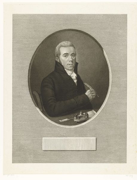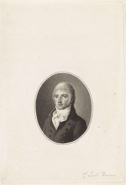 Philippus Velijn created this portrait of Willem Hendrik Warnsinck in the early 19th century using etching techniques. The subject's direct gaze commands attention, a symbol of authority and self-assurance that dates back to ancient Roman portraiture. Consider the high, stiff collar—a visual representation of the era's emphasis on formality and restraint. These collars, which began as practical neck protection, evolved into symbols of status and discipline. We see echoes of this sartorial language in later military uniforms and formal attire, each iteration subtly altering the message conveyed, from aristocratic refinement to the rigid conformity of the modern era. The image's enduring power lies in its ability to evoke a sense of stoic dignity. Such iconography taps into a collective memory, reminding us of the values and ideals that have shaped societies across time. The portrait's enduring appeal stems from its connection to deeply rooted cultural narratives.