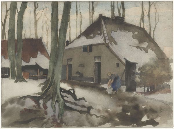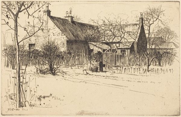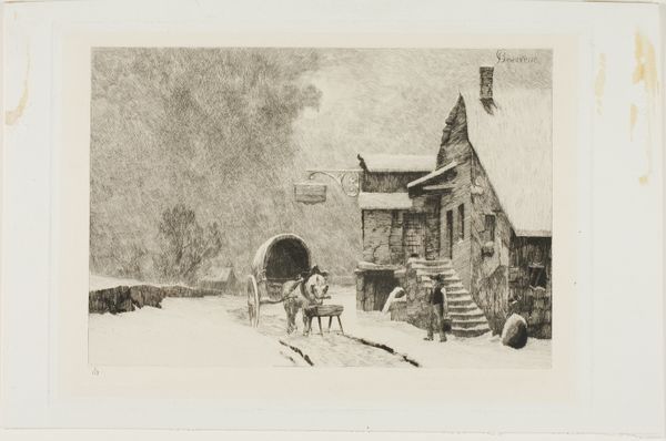 T. Frantisek Simon created this etching titled ‘Little Street in Prague.’ Simon, an Austro-Hungarian Jewish artist, offers us a window into a snow-laden Prague street, absent of crowds yet inhabited by figures who seem burdened and isolated, set against the backdrop of a muted urban landscape. His choice to portray the city this way may reflect the cultural anxieties felt at a time of political and social upheaval in Europe. Simon's technique creates a subdued palette, with the snow blanketing the scene, underscoring a sense of quiet solemnity. The two figures, one pushing a wheelbarrow and the other carrying a load, evoke the daily struggles of ordinary people during a period marked by social inequalities. The architecture in the image may seem aged, and in this context, the buildings and structures may represent resilience and permanence. ‘Little Street in Prague’ offers a poignant reflection on identity, labor, and perseverance, set within the silent narrative of a city under snow.
