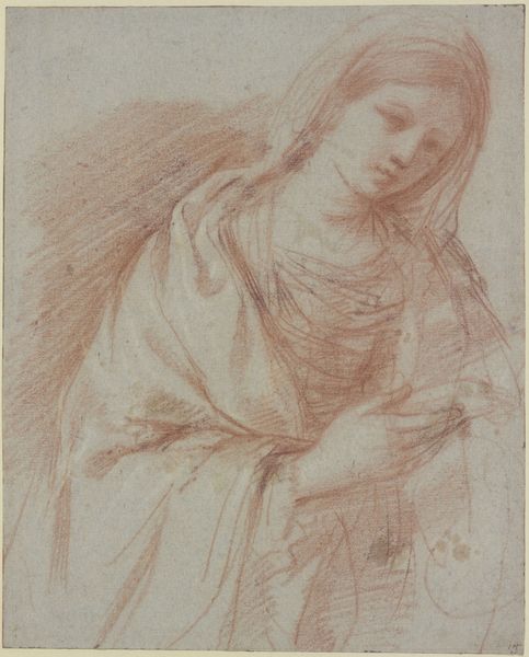 Giovanni Battista Piva created this ‘Head of a Woman’ drawing sometime in the late 18th century. It is rendered in chalk on gray paper. During the 1700s, women were frequently portrayed through a male gaze. Piva’s drawing of a woman looking down reflects the cultural norms of the time, where women were often depicted as demure and submissive. The soft lines of the chalk emphasize her gentle features, conforming to idealized standards of femininity. The head covering is likely a reference to modesty. However, there's also a delicate emotionality in this work, a sense of introspection, as she looks down, inviting us to question the expectations placed on women during this period. While Piva's work may reflect some of the traditional representations of women, it also hints at the complexities and inner lives of his subjects. We can still wonder about the woman depicted, and the quiet intensity of her downcast gaze.