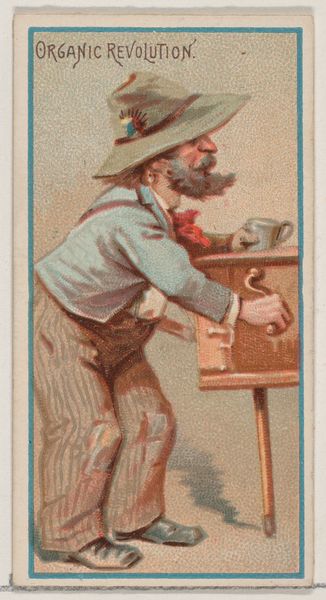 Curator: At first glance, it's playful but the composition feels awkward somehow. A tiny body topped with an oversized, stern face. Editor: This is "[Photo Collage: Musical Conductor]" by Juan Pedro Chabalgoity, dating from somewhere between 1870 and 1880. It's a print, incorporating photography, currently held at the Metropolitan Museum of Art. The charm lies in how Chabalgoity embraces collage – quite literally assembling an image. What processes would have been involved to achieve this effect? What choices determined the final materiality? Curator: It seems so…self-aware. That incongruity is definitely part of its appeal. Think of how photographic portraiture was becoming increasingly accessible, but still retained an aura of authority. By combining it with this almost cartoonish body, is Chabalgoity critiquing the seriousness we typically project onto such images? The uniform is very purposefully chosen as well. It holds symbolic value for civic and patriotic themes during the rise of Nationalism. Editor: Precisely. And let's consider the format – most likely a carte de visite or a cabinet card, affordable and collectible. To juxtapose the face of authority and leadership on this small mass produced and traded card seems provocative to me, even challenging ideas about the social mobility that photography was enabling, no? We’re looking at very deliberate acts of cutting, pasting, and reproducing this image, so I would wonder at its impact on viewership at the time of production. Curator: I agree, that's a fantastic point. This smallness almost democratizes the image, rendering it less intimidating. Even the awkwardness plays into it – undermining any potential for stuffiness. The image reads less like a monument, more like a mischievous caricature of power. The face of the subject looks quite intimidating in contrast to this childish playful form, perhaps symbolizing authority with playful yet authoritarian tones. Editor: Exactly! Its composite nature – the fact that it's made of tangible bits and pieces and materials assembled– that’s key. It reveals its constructedness, pulling back the curtain on image-making itself. In contrast, nowadays, digitally constructed pictures are seamless and pervasive; we take them for granted. In that case, does it reveal even more in modern viewership about what we understand as "authenticity" when looking at a photograph? Curator: So, in our modern age of seamless images, perhaps Chabalgoity's creation reminds us that all images, no matter how "real," are inherently constructions, imbued with symbols and cultural values? Editor: I’d say so. And it reminds us to consider the hand, the labor, the choices in every constructed reality we encounter, from the 1870s to now.