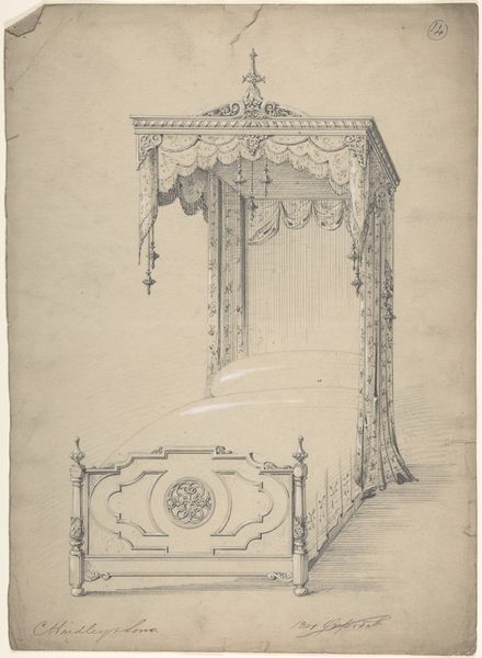 This is a design for curtains by Charles Hindley and Sons, created in the late 19th century, a period defined by Victorian ideals of domesticity. Hindley and Sons were a prominent decorating firm, catering to the tastes of the British upper and middle classes. The drawing offers us a glimpse into the aesthetics of the time, where elaborate window dressings were potent signifiers of wealth and status. These curtains, with their heavy ornamentation, speak to the Victorian obsession with embellishment. The layers of fabric and intricate patterns served to insulate the inhabitants from the outside world, creating a private, controlled environment that was a hallmark of Victorian domestic life. Yet, the drawing is also a document of labor and global trade. Behind the luxurious fabrics lie the hands of countless workers and the exploitation of resources from colonized lands. Ultimately, the drawing invites us to consider the complex ways in which domestic space has historically been shaped by power, privilege, and the intimate realities of everyday life.