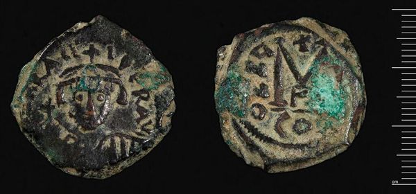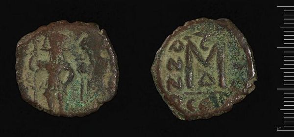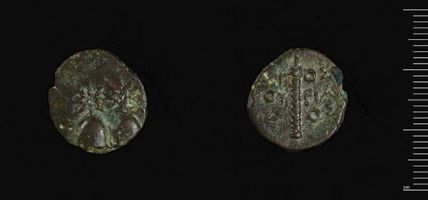 Curator: This is a follis of Nikephoros III from Constantinople. Editor: It appears heavily weathered, but there's a potent aura to it, like it holds a thousand untold stories within that verdigris. Curator: It's fascinating to consider how this coin represents the intersection of power, identity, and religious symbolism during Nikephoros III's reign. These types of coins were designed to spread propaganda and legitimize his rule. Editor: Absolutely. Note the figure, likely the emperor himself, flanked by stars, and the intricate cross on the reverse. These weren't simply currency; they were potent symbols meant to evoke authority, divinity, and Byzantine cultural identity. Curator: And the coin itself, beyond its symbolic weight, also signifies the economic and social structures of Constantinople at the time. A piece of everyday life for some, but a marker of imperial power for all. Editor: It is amazing how such a small object encapsulates so much history and symbolism. It gives us a unique window into the world and anxieties of its time. Curator: Indeed, by examining the historical context and symbolic language embedded within it, we understand much more about Byzantine society. Editor: Exactly. There is something deeply moving about this ancient coin still carrying echoes of long-lost empires.