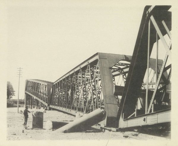 This photograph captures the stark scene of a collapsed railway bridge over the Nagara River in Japan, its author remains anonymous. The composition is dominated by the horizontal lines of the damaged bridge and the undulating earth, creating a sense of imbalance and disruption. The photograph's muted tones accentuate the raw materiality of the broken structure and the uprooted landscape. The collapsed bridge, a symbol of human engineering, is juxtaposed against the natural landscape, questioning the relationship between human construction and nature's power. We see the destruction that can occur as the effects of the earthquake destabilize human infrastructure. The absence of human figures amplifies the feeling of desolation, inviting contemplation on the themes of impermanence, resilience, and the latent violence inherent in natural disasters. This photograph serves not only as a historical document but also as a profound statement on the fragility of human endeavors in the face of elemental forces.