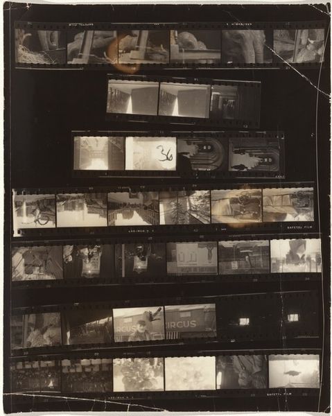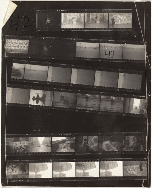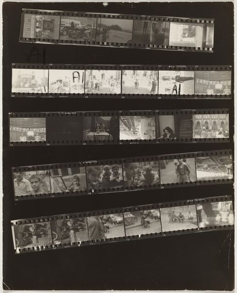 Robert Frank assembled this contact sheet, Paris 45A, using gelatin silver print. The high contrast and stark tonality gives the images a raw, documentary feel. The texture, though smooth, hints at the grainy reality of film, reminding me of a charcoal drawing, where each mark is a deliberate act of construction. There’s a beautiful repetition in the strip where we see the same man, leaning on his elbows, gazing into the camera. It’s like a series of sketches, each slightly different, capturing a fleeting moment in time. The composition, a collection of film strips on a torn page, feels like a visual diary. Frank is almost like a street photographer with a camera instead of a brush, capturing snippets of life and assembling them into a larger narrative. Think of his influence on Nan Goldin; both capture fleeting moments with a raw emotionality. Ultimately, Frank's work reminds us that art is often about the process of seeing and recording, rather than a quest for a perfect image.