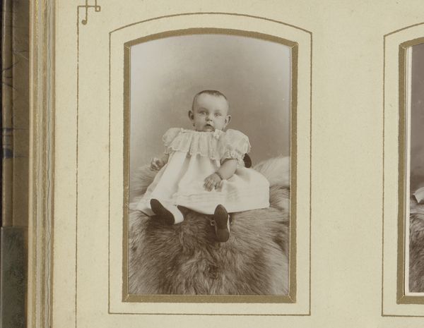 Curator: This is a work by Machiel Hendricus Laddé, titled "Portret van een staand meisje met pop," or "Portrait of a Standing Girl with Doll." It's a photograph dating from somewhere between 1892 and 1906. What are your initial thoughts? Editor: It strikes me as immediately poignant, and there's a certain vulnerability in the muted palette. The light earthy tones create such a melancholic mood. What can you tell me about the process used to produce it? Curator: Well, this piece falls squarely into the pictorialism movement. Laddé and other pictorialists manipulated photographic processes, treating photography less as a means of documenting reality and more as a vehicle for artistic expression. He also explored genre paintings in his career. We can trace a shift to viewing the photograph less as an item that "records" and more as a thing crafted. Editor: Absolutely. This historical photograph has that certain aged quality, visible through the toned paper—almost as if the passage of time is palpable. It forces us to ask what type of labor goes into the making and the subsequent restoring of the piece to its current state. What do we make of a “historical” photograph like this? Curator: I find myself pondering the gaze of the little girl. There’s an ambivalence in it. We see a figure positioned between childhood innocence, seen in her connection to the doll, and an imposed maturity of pose, the way she stands. The clothing is a product, of course, of its era and hints at class. The composition allows us to reflect upon these constraints. Editor: It's a carefully composed image, down to the placement of the doll in the child’s arms, a testament to photography's conscious creation. Thinking about materiality, what strikes me is that this object has persisted, becoming not just an image of a girl but a material witness. It exists now to challenge the distinctions that exist in terms of what we understand as ‘high art’ photography. Curator: Agreed. By looking through our contemporary lens we find ways to unlock historical works such as these. Editor: Definitely. It offers such a compelling intersection between a captured moment, material history, and a wider frame.