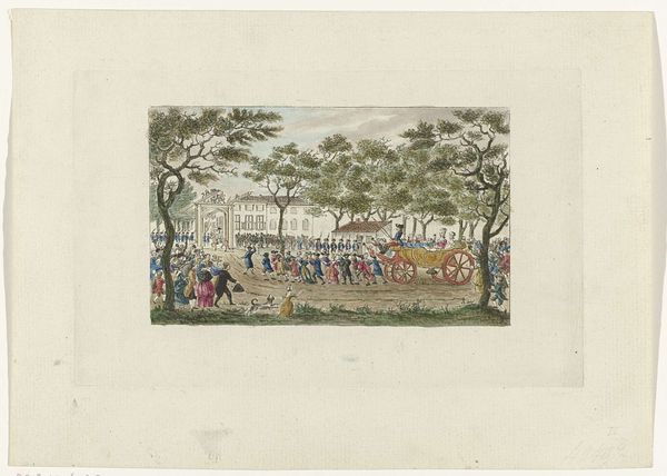 This etching by Carel Allard, likely made in the late 17th century, presents a garden with an elaborate fountain. Dominating the foreground is an intertwined monogram, possibly a royal cipher, set amidst meticulously arranged parterres. Such monograms, common in royal and aristocratic gardens of the era, functioned as potent symbols of power and lineage, echoing classical traditions where symbols were embedded within landscapes. The motif of intertwined initials can be traced back to ancient Roman emblems, signifying unity and intertwined destinies. Consider how, in later contexts, similar intertwined symbols appear in heraldry and even corporate logos, each time adapting to reflect evolving societal values. Here, the calculated arrangement evokes a sense of control over nature, mirroring the ruler's dominion. Note how the flowing water contrasts the rigidity of the garden, perhaps speaking to a subconscious desire to reconcile structure with nature. This tension, this play, is what makes this image a carrier of cultural memory, engaging us on a deeply human level. The monogram persists, transformed yet recognizable, a testament to our enduring need to encode identity and legacy within the spaces we inhabit.