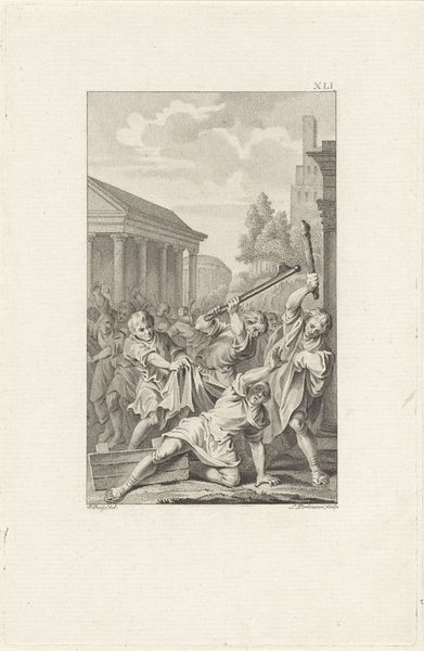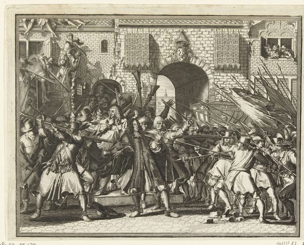 This print, titled "Absalom's Servants Kill His Brother Amnon", was made by Joseph Mulder in the late 17th or early 18th century. It is executed in the intaglio process of engraving, which involves scoring an image directly into a metal plate, applying ink, and then pressing paper against it. The image, a biblical scene, teems with social and political commentary. In terms of material, it’s relatively straightforward: metal, ink, and paper. But it's the labor invested in the making that gives it meaning. Every line meticulously carved by hand, with careful attention to light and shadow to create depth and drama. Engraving was a skilled, painstaking craft. Mulder would have trained for years to achieve this level of precision. The print could then be multiplied, so knowledge and ideas could circulate more easily. Although it is “just” a print, this artwork stands as an important testament to the enduring power of craft and making.