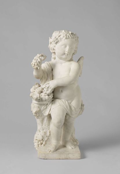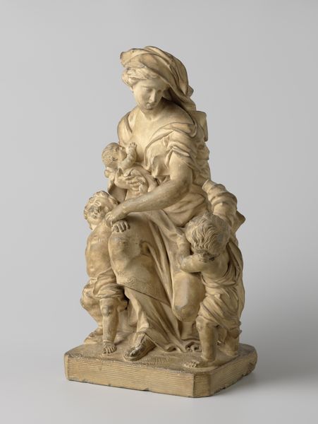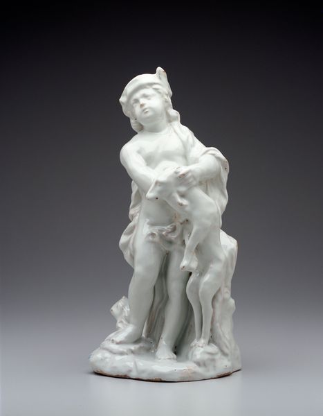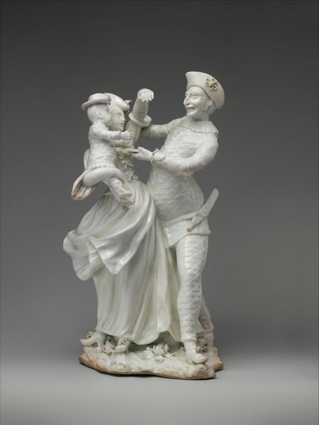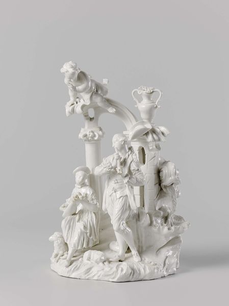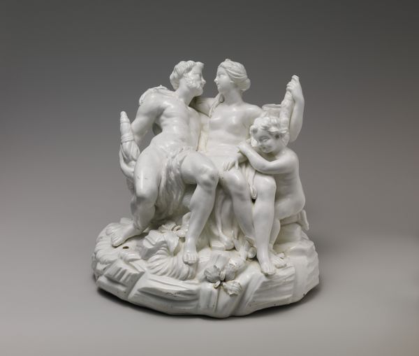 Editor: This delicate porcelain sculpture, "Virgins Awaking Cupid," made by the Derby Porcelain Manufactory around 1775-1785, shows such careful crafting. It has such a pristine feel. I’m interested in hearing more about how this kind of object comes into being. What are your insights into the process? Curator: This piece offers a clear glimpse into the intricate processes inherent in 18th-century porcelain production. Consider the specialized labor required: from the kaolin mining, clay preparation, the shaping, the firing, all of which speaks to division of labor inherent in manufactories of the time. It also begs the question of what these materials meant to different segments of society. Editor: That's fascinating! I hadn't considered the social implications embedded in the materiality of porcelain. What would these implications be? Curator: Well, think about it – porcelain was a luxury item, initially imported from China. This English manufactory's work attempts to compete with and capture some of that market. The allegory becomes a means of demonstrating the factory's capabilities and attracting wealthy patrons. What social class do you think were the initial owners of the final artwork? Editor: Likely aristocrats who were displaying this at their homes, possibly? So this beautiful object is actually bound to production, class, and even competition. That adds new layers to its charm for me. Thanks for clarifying that! Curator: Exactly! The artistic value of the object resides not only in its visual appeal but also in the story of its making, it becomes an item charged with social history.