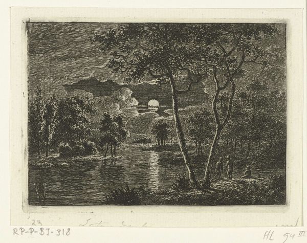 Ernst Willem Jan Bagelaar created this river view with a setting sun in the late 18th or early 19th century using etching techniques. The setting sun here, partially obscured by clouds, speaks to a long lineage of symbolic representations. Consider the sun's journey—its daily 'death' and 'rebirth'. The setting sun has often symbolized endings, reflection, and the cyclical nature of life itself. We see echoes of this in ancient Egyptian mythology, where the sun god Ra journeys through the underworld each night, only to be reborn at dawn. The Christian concept of resurrection also mirrors this symbolism. These universal motifs tap into our collective unconscious, evoking a sense of melancholy but also hope. Bagelaar’s delicate rendering invites us to contemplate our place within the grand, ever-turning wheel of time, where endings are inevitably followed by new beginnings. The sun is not just a celestial body; it is a mirror reflecting our deepest fears and aspirations.