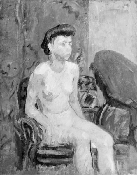 Bela Czobel painted "Nu Assis" around 1928, capturing a seated nude figure in somber tones. Consider the pose: the figure's downward gaze and slumped posture evoke a sense of introspection and melancholy. We see echoes of the classical Venus Pudica, but here, the gesture is less about modesty and more about a withdrawal from the gaze of the world. This motif—the averted eyes, the internal focus—resonates through art history. Think of medieval depictions of the Annunciation where Mary's humility is shown through a lowered head, or even modern portraits where a subject’s gaze suggests a complex inner life. The psychological weight of this image is palpable. There is an emotional echo that transcends time. It is as if the artist captured not just a physical form but a state of mind, engaging viewers on a deep, subconscious level. This is an example of how artistic symbols are non-linear and cyclical, and resurface, evolve, and take on new meanings.