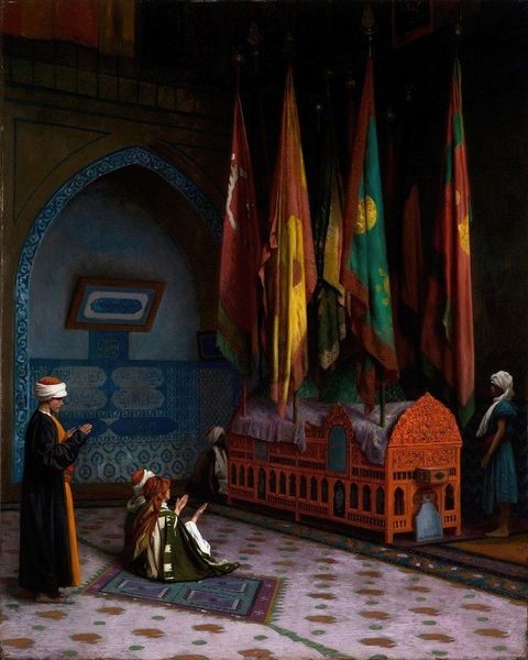 Jean-Joseph-Benjamin Constant made this painting of a Moroccan palace using oil paints and a variety of brushes. He was among many nineteenth-century European artists who took inspiration from North Africa. The painting imitates the way architecture of the time deployed craft techniques like patterned tile work, textile design, and ornate plaster and woodwork. The artist painstakingly details the qualities of the materials - the colors, textures, and patterns. In particular, the artist's brushwork itself mimics the labor-intensive processes of the artisans who made the Palace. But the view it gives us of an exotic, opulent, and indolent lifestyle raises questions about the nature of labor. Who exactly would have made all these beautiful things, and under what conditions? Though Constant’s painting celebrates the look of craft, it ultimately detaches it from the social realities in which it was made.
