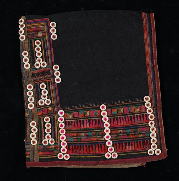 This Arkalik, or back apron, was made by an anonymous artist, and I'm thinking about their patient work. The black cloth is striped with thin white lines, a decision that feels both simple and striking. But the thing that grabs me is the border. There are rows of tiny, intricate patterns, and then this amazing fringe of deep red, almost burgundy, tassels. I can imagine the texture of that fringe, the way it would move and sway. It's a beautiful contrast to the strict geometry of the stripes. The apron is a real testament to the power of detail, to the way that small, careful gestures can add up to something truly special. It reminds me a little of the work of Ree Morton, who took everyday objects and transformed them through color and texture. Like Morton, the artist is showing us how beauty can be found in the most unexpected places, and maybe, that art is about more than just what we see, but what we feel.