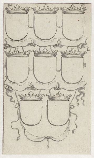 Editor: So, this print is called "Ontwerpen voor huwelijksaankondigingen," or "Designs for Wedding Announcements," made by Jacob Schwartzenbach around 1798. It's comprised of different styles of decorative frames. What I find fascinating is how varied the symbolism is even within a single sheet of templates. What strikes you when you look at it? Curator: Well, considering its social function, and the socio-political climate, I find myself wondering about the intended audience and how these images played into societal expectations of marriage during that period. Notice how the imagery varies – from the classical putti to more somber skulls. What do these different motifs suggest about the evolving understanding of marriage itself? Editor: That's a good point, the contrast is hard to miss! How would these announcement designs be viewed considering the French Revolution, only a decade before, and how would this influence ideas on love and tradition? Curator: Exactly! Think about how print culture was flourishing and these engravings were helping spread not only wedding news, but ideologies too. Were they intentionally trying to promote certain societal structures through these designs? Are there hidden messages beyond mere aesthetics? What do the skeletal figures communicate alongside the cherubic ones? Editor: It's interesting to think of these wedding announcements not just as practical objects but also as carriers of social and political messages. Curator: Precisely. The "politics of imagery" isn’t limited to grand history paintings. Even these small, personal designs contribute to the broader visual landscape and its influence on cultural values. Editor: I will certainly never look at wedding stationery the same way! Thanks for opening my eyes to the history embedded in such seemingly simple prints.