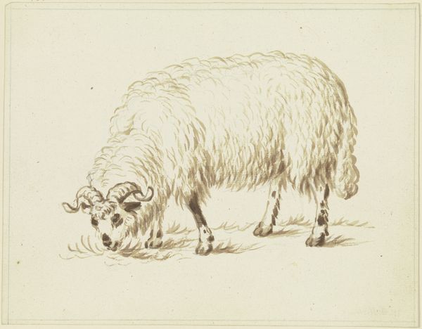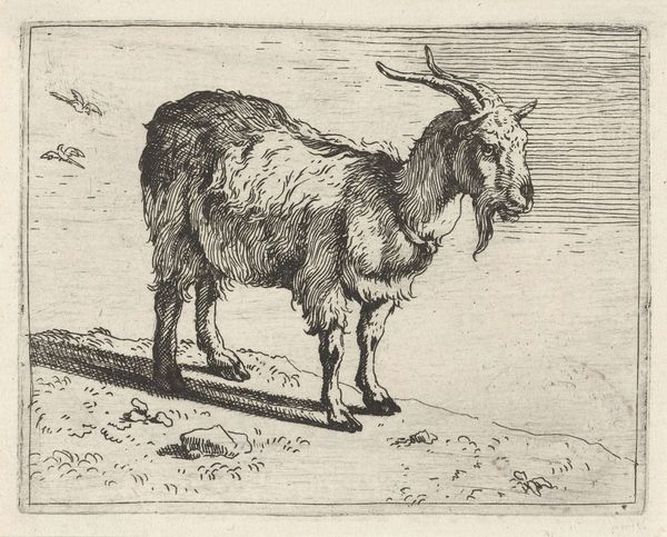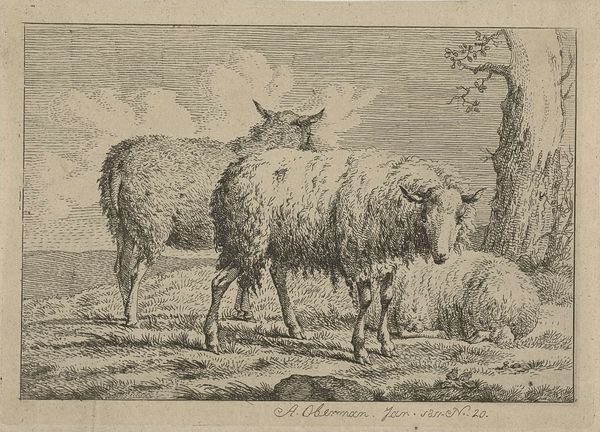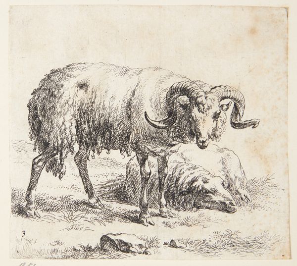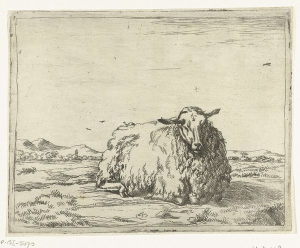 Richard Nicolaüs Roland Holst made this print of a sheep in a coastal landscape using etching. The material qualities of the metal plate have a strong influence on the final appearance, as the etched lines are able to capture incredible detail. Holst would have painstakingly created the image by drawing through a waxy ground on the metal, then bathing the plate in acid. The acid bites into the exposed lines, creating grooves that hold ink. Wiping the plate leaves ink only in these grooves, and the image is transferred to paper under great pressure. The result is a print with a velvety quality. This highly skilled process has a social and cultural significance tied to the history of printmaking, where reproducibility meets artistic endeavor. The laborious process used here elevates it beyond mere reproduction. It invites us to appreciate the work involved in its creation, challenging the traditional hierarchy between craft and fine art.