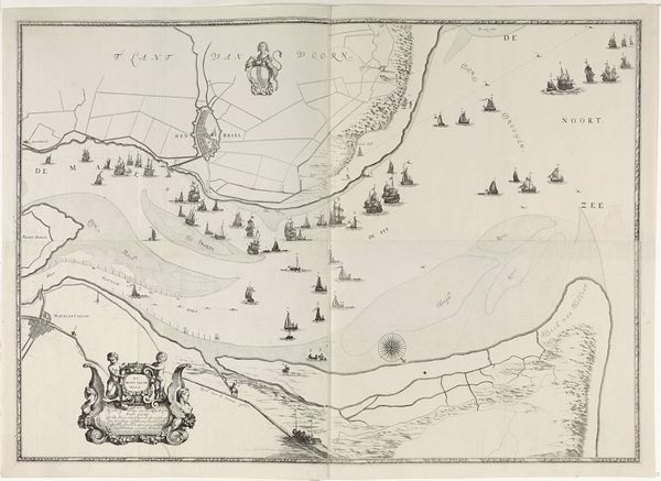 Stefano della Bella made this print, Beleg van Piombino, using etching, a printmaking technique that dates back to the early 16th century. The process involves coating a metal plate with a waxy, acid-resistant substance, and then drawing through this coating with a sharp needle. When the plate is immersed in acid, the exposed lines are eaten away, creating grooves that hold ink. In this particular print, the fineness of the etched lines gives a sense of precision, appropriate for the subject matter: a military engagement. Della Bella used the technique to map out every detail of the siege, emphasizing the strategic and logistical work of warfare. Consider the many hands involved. From the miners extracting metal, to the specialists preparing the etching ground and acid, to the press operators who transferred the image to paper, labor is embedded at every stage of production. This print speaks to the collective effort that underlies both art and war.