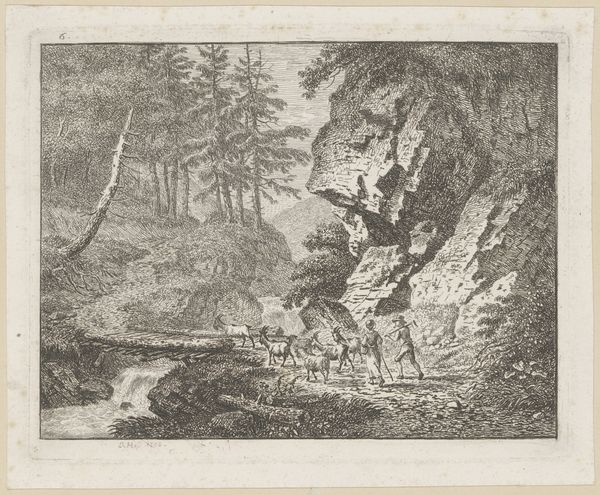 Rodolphe Bresdin made "Rider in the Mountains", a black and white print, with an etching needle and scraper in the 19th century. Bresdin was working in a France that had undergone a series of revolutions, and this print presents the viewer with a landscape as a space in turmoil, and an identity of the wanderer. Look closely at the figures. They are not centered, but rather exist on the periphery, seemingly dwarfed by the landscape itself. Bresdin, who identified as a bohemian, would likely have seen himself as an outsider. Here, the artist seems to be questioning traditional heroic narratives, perhaps commenting on the socio-political upheavals of his time. Bresdin once stated that he wanted to create art that was “bizarre." Consider how the rough, almost chaotic, lines add to the emotional depth of the piece. "Rider in the Mountains" prompts us to consider what it means to exist on the margins and whether there is such a thing as truly conquering nature.
