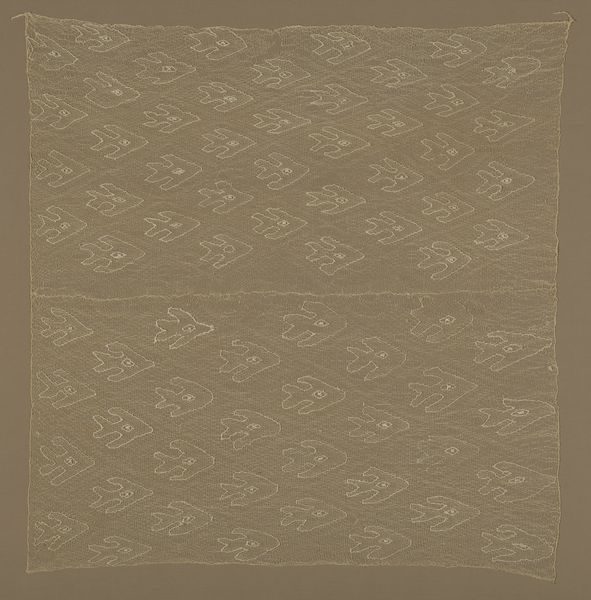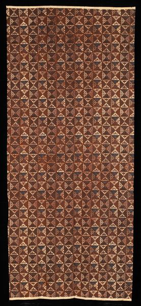 Curator: Looking at this, I'm immediately struck by the feeling of dense, luxurious containment. It's intricate and yet somewhat oppressive in its darkness. Editor: I agree, there is a definite weightiness to it. We're looking at a sarong, a type of textile, possibly cotton, created sometime in the 19th century. It’s currently housed here at the Minneapolis Institute of Art. What symbols and historical echoes do you perceive in it? Curator: Well, the overall effect is like a field of linked lozenges or diamond shapes. This visual repetition and geometric grounding create a powerful sense of order, but I'm wondering about potential cosmological interpretations. Was this particular motif tied to fertility or protection? How was its visual story used, and how did it serve cultural identity in ritual or everyday use? Editor: Exactly! And what community created this? How was the process gendered? Textile production is so often connected to women's labor, and this labor isn't often recognized. How are power dynamics expressed through who creates, who wears, and who has access? Curator: A potent reminder that even something seemingly decorative, like a sarong, is a carrier of histories and hierarchies. The pattern, despite being abstract, evokes a deeply coded visual language—of protection and belonging perhaps. It reminds us that clothing can serve as a powerful icon. Editor: I am always interested in what this textile could tell us if it could speak. What were the conversations surrounding its creation, and how was this kind of labor viewed and valued at that moment? Understanding labor history through a piece of material culture invites us to critically look at gendered production in art history. Curator: Ultimately, viewing art through this lens makes visible otherwise unacknowledged threads of labor and ingenuity embedded in the object. Thanks, it is indeed humbling to acknowledge such complexities behind this visually imposing textile. Editor: A powerful reminder that art is inseparable from lived experience. Let’s keep pulling at those threads and interrogating what remains unseen.