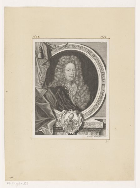 Here we see Jean Baptiste Vérité's monochrome print, "Portret van Marie-Thérèse Louise de Savoye-Carignano in ovaal". Its small scale invites an intimate viewing experience, drawing us into the delicate rendering of the subject. The oval format immediately frames and contains our gaze. Within this shape, Vérité masterfully employs the contrast of light and shadow to model the Princess’s features, creating an interplay that animates her likeness. The varying densities of lines—a fundamental element—define form, texture and space. Notice how the intricate lines that shape her dress give way to a smoother complexion, highlighting the almost ethereal quality of her face. The formal elements of the oval frame and the Princess’s ethereal representation create a structured image, but this construction should not suggest fixed meaning. Instead, the print invites us to consider the interplay between the represented and the real, the public and private, the historical and the aesthetic. By investigating these visual strategies, we see how Vérité offers not just a portrait but also a lens through which to consider the very act of representation.