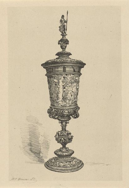 Curator: Standing here, I’m struck by the sheer gravity of the image before us. It’s Charles Percier's rendering from 1804, titled "Ciborium for the Coronation of Napoleon I." You can find it in the Met's collection in New York. Immediately it just looms, this massive chalice sketched out like a phantom idea... Editor: Yes! "Phantom" is the word. There's a ghostly, unreal quality about it. Like it’s a monument floating just out of reach, in that perfect neoclassical greyscale. What a grandly somber feel. Curator: Grandly somber...I think that hits it squarely. I find myself really fixated on its symbolic weight. This object, even as a concept drawing, encapsulates ambition on a frankly absurd scale. Can you see it? How would you feel standing before this artifact in the flesh? Editor: I imagine a mix of awe and a touch of fear. Think about the symbolism; the eagles hinting at Roman authority, the laurel wreaths a classical nod to triumph, all swirling around the central cross. It’s almost pagan and religious at the same time, which…sums up Napoleon's imperial ideology quite neatly, don’t you think? Curator: Indeed. Percier's rendering seems caught between reverie and blueprint. It shows not only a design, but a mood. He so clearly captures this sense of impending… something. Majesty or megalomania, it’s hard to parse which. Editor: Absolutely, and that cross crowning it all... It seems almost precarious atop all that imperial hubris, doesn’t it? Such heavy symbols... do you ever wonder how we continue to carry that much weight as societies? Curator: More than ever. What’s remarkable is how the pencil and print medium soften that intended impact. Imagine the solid, polished version of it during that theatrical coronation—it must have felt stifling! Editor: It probably did. Looking at this preliminary rendering has almost done the opposite for me: all that grandiose meaning begins to evaporate, leaving only the fragile artistry that makes such powerful things even possible. Curator: Ultimately, perhaps the most arresting aspect is not what the ciborium represents, but how vividly Percier lets us glimpse the mechanism behind manufactured glory. Thanks for highlighting that paradox. Editor: My pleasure! That ghostly beauty might be what I carry with me.