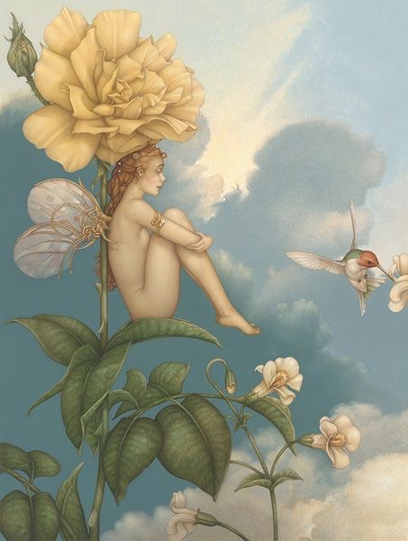 Michael Parkes painted ‘Europa’ using traditional oil paints, which is not unusual, but his artistic practice is uniquely his own. Parkes’s mastery with the oil medium is apparent through the artwork’s smooth, porcelain-like finish. He uses a meticulous glazing technique that involves building up multiple thin layers of paint, resulting in a luminous and ethereal quality. Oil paint’s capacity for blending allows for a seamless transition of colors and tones. Look closely at the figures, and you will notice the delicate gradations in skin tone and the subtle interplay of light and shadow. The details of the swan’s feathers, the water’s reflections, and Europa’s drapery, evidence a high level of craftsmanship and attention to detail. Parkes' choice of oil paints also influences the artwork’s theme. By using a classical medium he reinforces the scene’s ties to traditional European art and mythology. He then destabilizes the tradition by imbuing it with his brand of surreal fantasy, which is tied to non-Western spiritual motifs. It’s a subtle subversion, but one that speaks to the porous borders between high and low art.