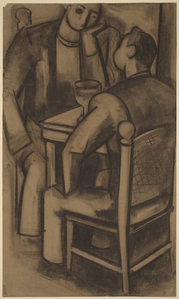 Editor: Here we have N. Krishna Reddy's "Musician," created in 1957 using etching. The fragmented lines create this melancholic feel to the work. How do you interpret this work? Curator: It's tempting to simply appreciate the visual and formal elements—the line, the abstraction—but I think we need to ask *why* this figure is so fragmented. How might this broken representation relate to the artist’s own identity and experiences navigating post-colonial India and the Western art world? Is the musician, perhaps, a symbol for the displacement and re-articulation of cultural identity? Editor: That’s fascinating, I hadn’t considered it like that! So, the abstraction could be about more than just visual style. Curator: Exactly! Reddy moved between cultures and artistic movements. The figure's distortion, and even the stark tonal contrast, might represent a grappling with these different worlds. Consider too, the tradition of the musician as a figure for the soul—could Reddy be asking us to contemplate the fractured state of the modern soul, caught between tradition and modernity? Editor: I see how that contextual background adds a lot. It’s almost as if the visual fragmentation mirrors the feeling of cultural fragmentation. Curator: Precisely! And even the choice of etching, a traditional printmaking method, seems significant. Is Reddy consciously engaging with artistic heritage while simultaneously pushing its boundaries? It encourages us to see art not as existing in a vacuum, but as a response to social and political realities. Editor: That makes me see the artwork in a new light. It feels like it has much more depth now! Curator: It's exciting how considering social context opens new ways of seeing even familiar things.