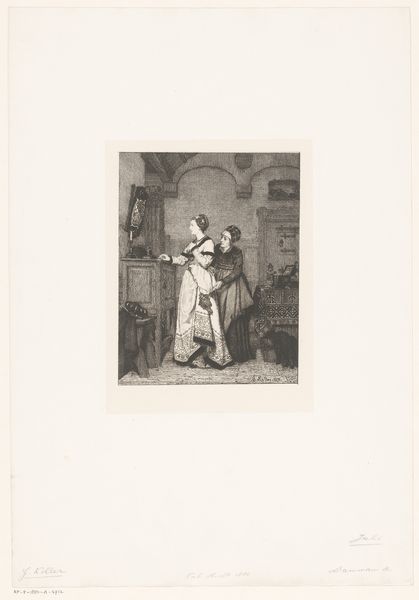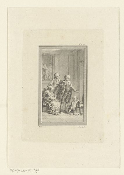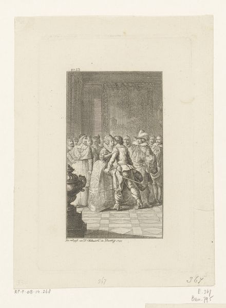 Daniel Nikolaus Chodowiecki's delicate engraving captures a scene of familial embrace within a regal chamber. The most striking element is the intense physical affection between the two men, a motif resonating with ancient gestures of peace and reconciliation. Consider, for instance, the "accolades" in Roman art, where embraces symbolized alliance and concordia. This harks back to much older images—Gilgamesh embracing Enkidu on Mesopotamian cylinder seals. Observe how, through art history, such gestures evolve; from political endorsements to displays of familial affection. The embrace speaks to our deep-seated need for connection. It’s a primal expression, tapping into the collective unconscious of human interaction. It is a powerful force, engaging viewers on a deep, subconscious level. In the ever-turning wheel of cultural memory, this scene mirrors humanity’s continuous search for kinship and understanding. The embrace, a testament to enduring human emotions.