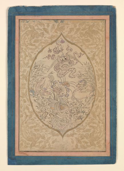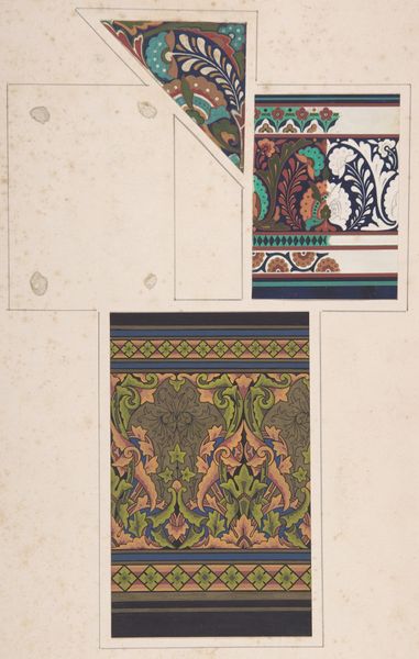 This is Jules-Edmond-Charles Lachaise's design for a dining room ceiling, created with pen and ink and watercolor. The Château de Cangé design is rich in ornamental motifs, featuring stylized foliage, geometric patterns, and heraldic symbols, each carrying layers of cultural significance. Note the intertwined patterns, evocative of ancient Roman floor mosaics and the Islamic arabesque, motifs that speak to the endless and infinite. The foliage, rendered with careful detail, is a symbol of growth, life, and renewal, echoing themes found in ancient Greek and Roman art. Consider how the stylized foliage here has distant relatives in the borders of illuminated manuscripts from the medieval era. These motifs are like migratory birds, reappearing in different epochs, each time slightly altered, carrying echoes of past meanings into new cultural contexts. This ceiling design engages us on a subconscious level, stirring ancestral memories. The cyclical progression of symbols shows us how forms resurface, evolve, and take on new meanings across time.