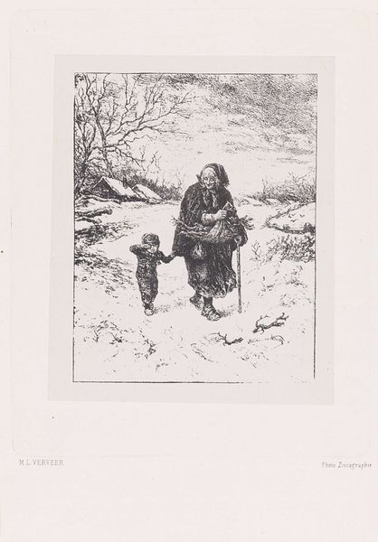 William B. Closson created this engraving entitled, 'Winter Birds'. While the date of its making is unknown, the styles and subjects it depicts are telling. This image of a well-to-do woman walking with two children through a snowy landscape replete with bare trees and birds, suggests the social and cultural priorities of the late 19th century in the United States. Consider, for example, the emphasis on domesticity and the cult of motherhood, where women were increasingly idealized as guardians of the home and family. This composition, with its detailed rendering of clothing and the soft textures of snow, echoes the conservative values of the time, subtly reinforcing traditional gender roles. The role of art institutions is also worth considering. Art schools were becoming increasingly influential, promoting a particular academic style, and museums were beginning to shape public taste and notions of culture. To fully understand this piece, further research into late 19th-century American social history and the role of art institutions of the time would be invaluable.