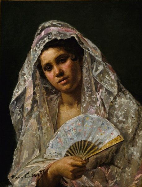 Jules Joseph Lefebvre painted "The Red Fan" in 1866, using oil on canvas. While the subject is rendered with great skill, it’s the materiality of the fan itself that I find particularly compelling. Consider how the fan was likely made. Artisans, perhaps working in a factory setting, would have carefully constructed the fan's frame, likely from wood or bone. Then, fabric or paper, meticulously painted red, would have been stretched and glued. The repetitive actions involved in its production speak to the burgeoning industrial processes of the 19th century. The fan, here a striking prop in a portrait, has a double life, both as a mass-produced object and a personal adornment. Lefebvre’s painting prompts us to consider the complex relationship between labor, consumption, and representation in the 19th century. It’s a reminder that even the most seemingly decorative objects can be deeply entwined with the social and economic forces of their time.