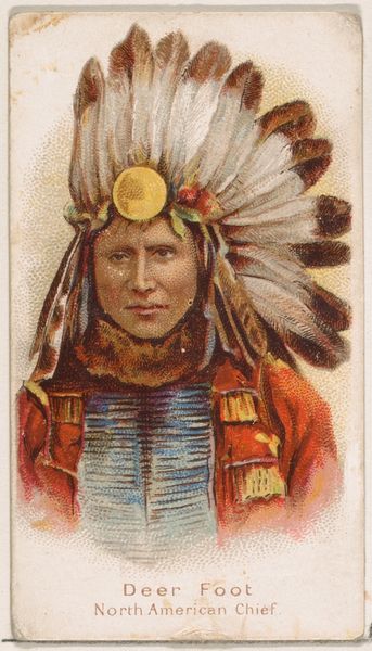 This small lithograph of American Horse, a North American chief, was made by the Wm. S. Kimball & Co. Notice the striking feathered headdress, a powerful symbol of leadership and honor within many North American tribes. These headdresses are not merely decorative; they represent a deep connection to the spirit world and the achievements of the wearer. Consider how similar motifs appear in different cultures, like the elaborate headgear of ancient Egyptian pharaohs or the feathered cloaks of Polynesian chiefs. Each carries its own specific cultural significance, yet they all speak to a universal human impulse to visually express power and authority. The feathered headdress of American Horse connects us to a broader, cross-cultural language of visual symbolism, reflecting how societies, across epochs, have used images to reinforce hierarchy and identity. This image taps into primal emotions tied to respect and dominance.