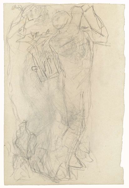 This is Matthijs Maris's pencil drawing titled "Dansende figuur, naar links" which translates to "Dancing figure, facing left". Maris was working in a period of significant social and cultural transformation. As industrialization swept through Europe, artists began questioning traditional academic approaches to art. Maris was part of a movement that explored the relationship between the inner emotional life and the external world. The figure appears to be caught in a moment of intense movement, possibly a dance. It is sketched with soft, almost dreamlike lines. Maris leaves much to the imagination. His drawing has an emotional intensity, reflecting his belief that art should evoke feelings and moods rather than represent reality. Consider how Maris captures the essence of movement and emotion. It avoids traditional representations of the human form, focusing instead on capturing a fleeting moment of expression. The figure's dance becomes a mirror reflecting our own emotional states.