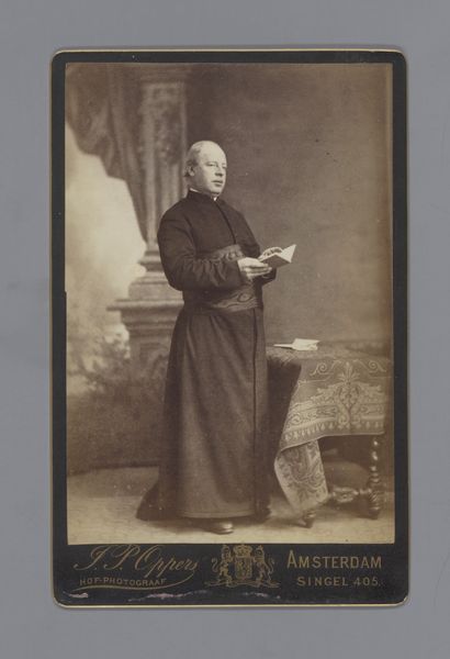 Editor: We're looking at "[Chinese Gentleman]," a portrait taken in the 1870s by Raimund von Stillfried, currently residing at The Met. It's quite striking. The subject's gaze is so direct. What’s your first impression? Curator: It’s more than a portrait; it’s a performance, a constructed reality designed for a Western audience fascinated by the "exotic" East. I can't help but wonder about the sitter, and how much agency he had in this representation. He embodies a sort of stoic dignity. I find myself pondering on the context. What was it like for the Chinese to be captured by a Western lens at that moment in history? It couldn't have been straightforward. Editor: It's interesting you say 'performance.' I was drawn to his clothing and how posed he seems, now you’ve pointed out that tension of East meeting West. Is that green robe indicative of rank, or…? Curator: Most likely. Each detail, down to the hat, conveys status. Consider Stillfried’s position – a foreigner documenting a culture rife with its own symbols and sartorial cues, which would've carried an enormous weight and depth for those familiar with the customs of the time. This photograph operates like a translation, always subject to interpretation and bias. Do you feel the sense of detachment it suggests? Editor: Yes, a feeling of disconnect is definitely present. I now see the subject more as a character almost, caught in a play between cultures. I appreciate you sharing a different lens on it! Curator: It's a layered narrative, really. Looking beyond the surface—historical contexts are not silent. And as viewers, we join that quiet dialogue across time.
