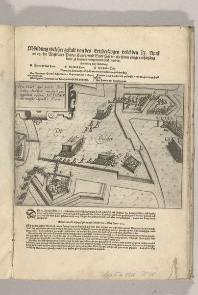 Curator: Here we have a print titled, "Siege of Ostend: the storm bridge of Targone, 1604". This engraving is currently held at the Rijksmuseum, and the piece is by an anonymous artist from around 1604. Editor: My first thought? This looks like an illustration straight out of someone's medieval war-game manual—equal parts frightening and hilariously impractical. It gives you a true sense of both technological invention and almost comical execution. Curator: Well, in terms of technology, it's definitely meant to capture that spirit of Renaissance ingenuity during wartime! We see that quite literally with a diagrammatic aesthetic. Editor: Right, you almost can’t miss how much labor it takes. Look at how many draft animals are roped up to make this invention work. Not only that, the final structure feels almost secondary to this print; like, how the knowledge gets passed around among builders takes precedence over some final object of display. Curator: Absolutely, you're zoning in on that production aspect which this piece displays proudly. Consider also how prints at the time played an educational and somewhat propagandistic role. It was like, "Here's the cool, scary thing we have!"—a technological flex, essentially. Editor: So a flex made with lines and pressure from an etching press. Tell me, who was consuming something like this, back then? Curator: Certainly the upper classes, military personnel, people in positions of power interested in such developments... Remember this comes during the Dutch Revolt— a pivotal time for technological innovation on the battlefield. The Northern Renaissance focus on detail lends itself particularly well here. Editor: And given its function, wouldn’t it make sense that "accuracy" became a style? I’d reckon they’re paying pretty close attention to things like the tensile strength of rope, the weight distribution of such a massive moving structure... Curator: Indeed, and despite its age and practical origin, its continued ability to intrigue lies perhaps in its raw, unfettered visualisation of invention as a product itself—the genesis and execution together captured and then shared, reproduced, almost endlessly across Europe at that time... I’m seeing in it the past's image of the future. Editor: I suppose, that’s fair. For me, though, its appeal lives most vividly in just how much sweat and timber would have needed to be invested, and the sense of anxiety that surely came with it—both the promise and real danger in such grand gestures of progress and ruin.