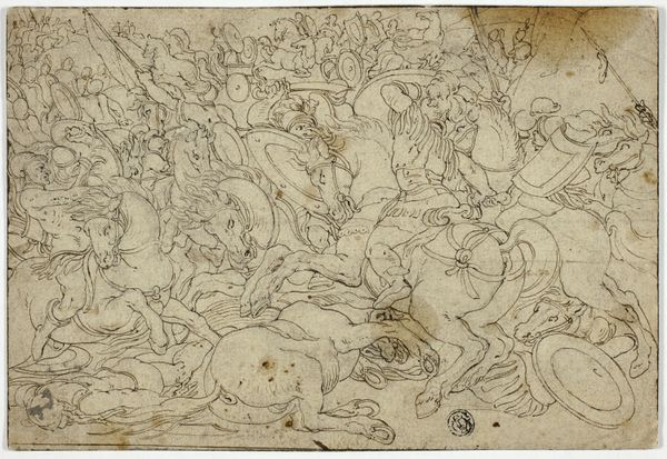 This drawing renders two of the twelve labors of Hercules in ink and wash. While the artist is unknown, the subject matter connects to a deep history of mythology and its uses within society. Here, we see Hercules in dynamic action, wielding a club over his head while wrangling Cerberus and the Mares of Diomedes. Hercules was often invoked to legitimize the power of monarchs, as we know from printed images and tapestries owned by European royalty. The circulation of Hercules imagery coincided with the rise of academies, like the Accademia del Disegno in Florence. There, artists were trained to draw antique sculptures and learn the visual codes that had signified power for centuries. To understand this drawing better, we could compare it to prints and drawings by artists such as Goltzius and Peter Paul Rubens. This would give a clearer sense of the meaning and cultural context of the image.