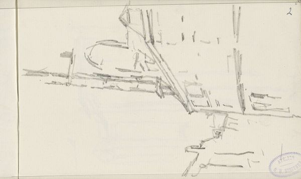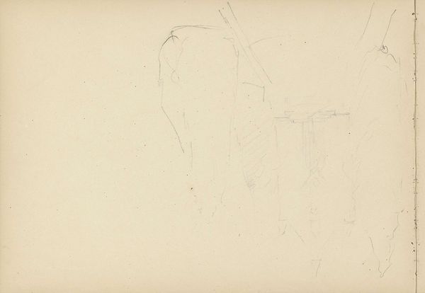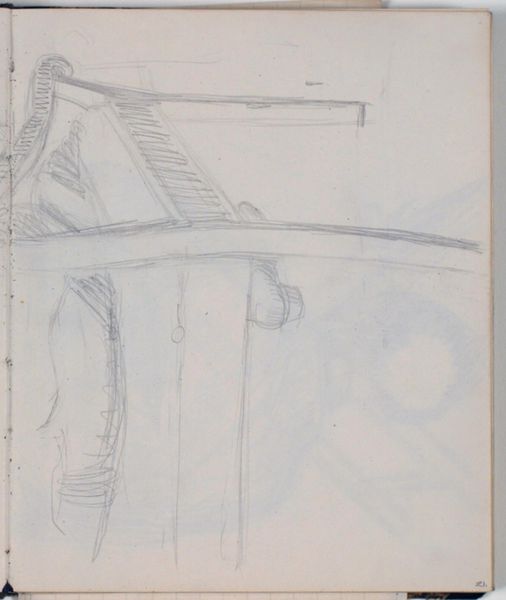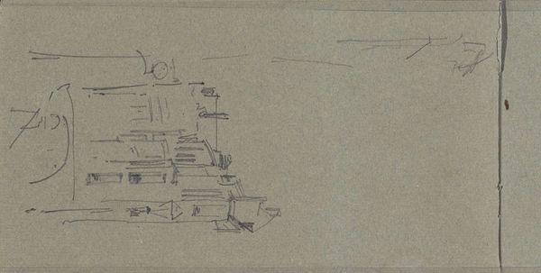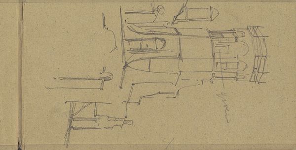 Editor: This drawing, titled "Boats in Drydock (?)," is by John Singer Sargent. It's hard to put my finger on it, but there's something so ephemeral and transient about it. What do you see in this piece? Curator: It's interesting you say that. Notice how the sketch, though minimal, clearly depicts boats – vessels of travel and transition. However, they are in drydock, suggesting a pause, a cessation of movement. Sargent is showing us a moment laden with the potential for symbolism, isn't he? Editor: Absolutely! I hadn’t considered that contrast. What do the symbols suggest to you? Curator: Well, consider the history of boats as symbols of journeys, both literal and metaphorical. What does it mean when those journeys are interrupted, halted? Sargent seems to capture that feeling of anticipation and suspended animation. It's a powerful commentary on the human condition. Editor: I see what you mean. Thanks! This really helped me think differently about Sargent’s sketches. Curator: My pleasure! It’s always fascinating how a simple sketch can hold such profound cultural weight.