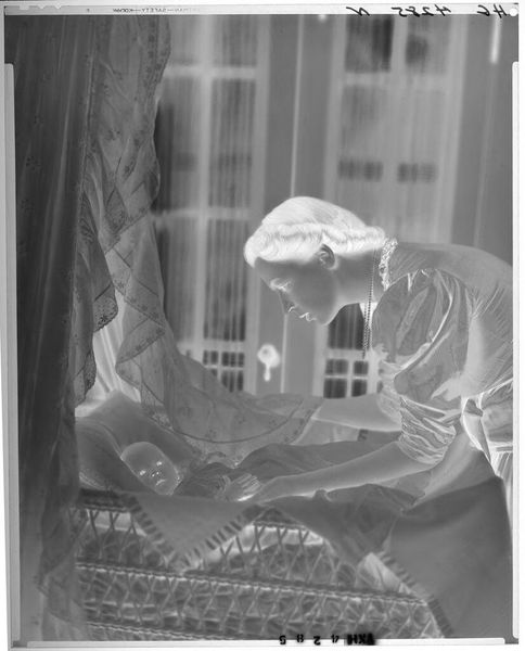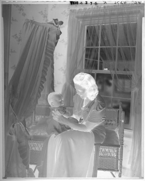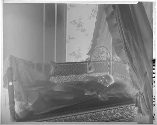Paul Gittings created this undated photograph, “Untitled (baby in bassinet).” The negative image captures an intimate, yet somewhat eerie scene of a baby in a bassinet. The choice to invert the colors transforms the familiar tenderness associated with images of infants into something more unsettling, challenging conventional representations of motherhood and innocence. The baby, often seen as a symbol of purity and potential, is cast in an uncanny light. Considered from a feminist perspective, the image plays with the cultural expectations of women as caregivers, hinting at the darker, unspoken aspects of maternal experience. The use of black and white strips away any sentimentality, highlighting the stark realities and anxieties that can accompany motherhood. The photograph’s emotional impact lies in its ability to evoke both a sense of vulnerability and a sense of unease, inviting viewers to confront their own preconceptions about family, identity, and representation.