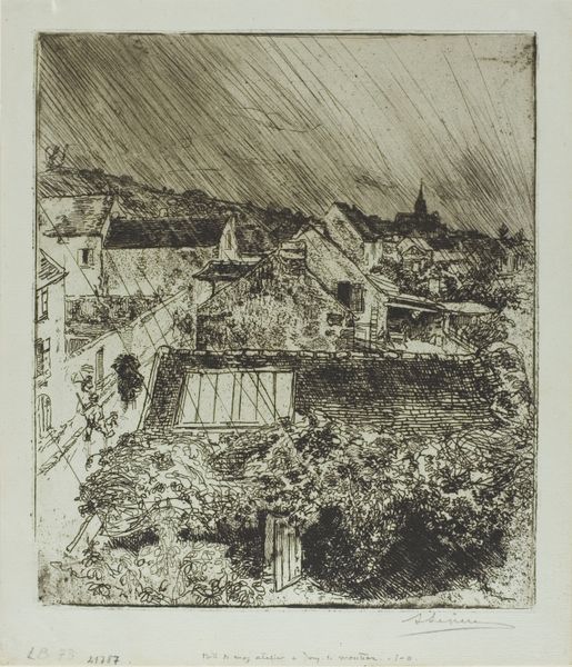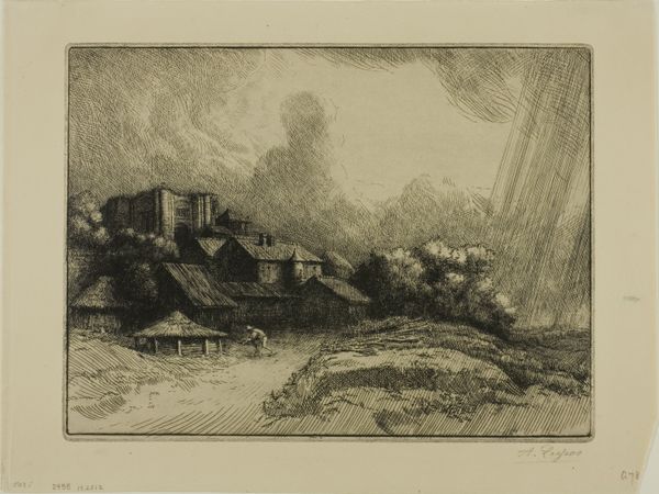 Alphonse Legros created this etching, "The Abbey Farm", using fine lines to capture a scene that feels both grounded and ethereal. The abbey, a symbol of spiritual refuge, sits nestled amidst the earthly realm of a working farm. The juxtaposition invites contemplation. From the medieval period onwards, we find similar iconography; the contrast of the sacred space with the everyday. Think of illuminated manuscripts depicting hermits in the wilderness, or even rustic nativity scenes. Here, the looming storm and the abbey on the hill evokes a sense of foreboding, a primal fear, perhaps. This contrast reminds us that the sacred and the mundane, the spiritual and the material, have long been intertwined in the human psyche. It is a dichotomy that continues to resurface in art, literature, and even our own dreams.