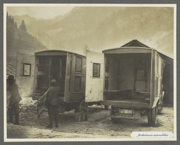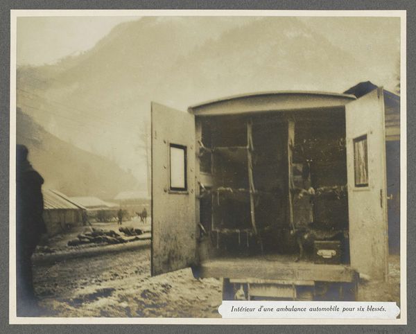 Curator: Here we have Roger Fenton's 1855 gelatin-silver print, "The Old Post Office, Balaklava," currently residing at The Art Institute of Chicago. Editor: My immediate reaction is one of somber observation; there's a stillness despite the obvious damage to the building. The sepia tones give it a feeling of a memory, a snapshot of a world left behind, almost as if suspended in time. Curator: Indeed. It’s fascinating to consider the materiality of this print as a relic of the Crimean War. Look closely at the ruined building – the collapsed roof, the visible infrastructure of its construction, the damaged timbers. It reminds us of the brutal realities and the human cost involved in the conflict. Editor: Absolutely. And beyond just ruin, it becomes an allegorical space for lost messages and communication breakdown within conflict itself. The fallen wheelbarrow in the foreground feels particularly symbolic, a conveyance broken mid-journey, unable to deliver what it holds. It acts as a direct metaphor for the failures in military and political conveyance that underpinned the war itself. Curator: Fenton's choice of photography, and gelatin-silver prints at that, over painting for example, marks a crucial moment where mechanical reproduction becomes intertwined with representing socio-political upheavals. It shows how the documentary capability became so central to how people were processing events like this war. What statements were made by reproducing it as a print? Editor: The post office itself bears so much symbolic weight – a center for connection reduced to rubble, with that looming hillside giving an intense backdrop for solitude and abandonment, or rather loss. War often destroys the connective tissues that allow society to function, replacing it with isolation, decay, and disconnect. The cracked plaster with shadows cast almost creates phantasmal portraits; ghostly images on a ravaged infrastructure. Curator: Right, the sheer weight of bureaucracy and supply lines needed for a campaign of that magnitude is almost overwhelming to consider. And this single building as a node point; how reliant armies were on spaces like this and yet also the human scale that is revealed by the image too. Editor: The lasting impact resides in how it captures the intersection of physical and emotional wreckage. It highlights communication failures that amplify material loss to the ruin that war yields within the cultural consciousness. It acts like a materialization of a haunting memory. Curator: Exactly, and thinking about it in terms of materials – the silver gelatin and the specific photographic techniques employed – underscores the transformation of information itself through the lenses of war and history. The image captures something profoundly important about this moment in time. Editor: Indeed. A somber echo from the Crimean War, resonating long after the fighting ended.