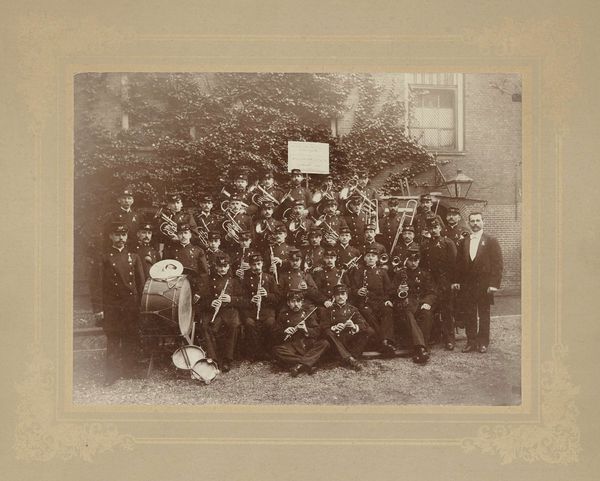 Editor: This photograph, titled "Untitled (student group)" by George Kendall Warren, shows a large gathering. It feels incredibly formal, yet also intimate in its depiction of this specific group. What strikes you about this image? Curator: The visual density speaks volumes. Notice how the uniformity of dress—the dark suits, the hats—creates a collective identity, a powerful symbol of belonging and shared purpose. What cultural memories does this image evoke for you? Editor: I think of academic traditions and the weight of history within institutions. So, they are literally posing on the steps of power. Curator: Precisely. The architectural backdrop isn't just setting; it's an active participant, reinforcing a visual narrative of permanence and authority. Consider the symbolic weight of each detail. Editor: That makes me appreciate how much symbolism is embedded in what at first seems like a simple group shot. Curator: Indeed, the photograph encapsulates cultural identity and collective aspirations.