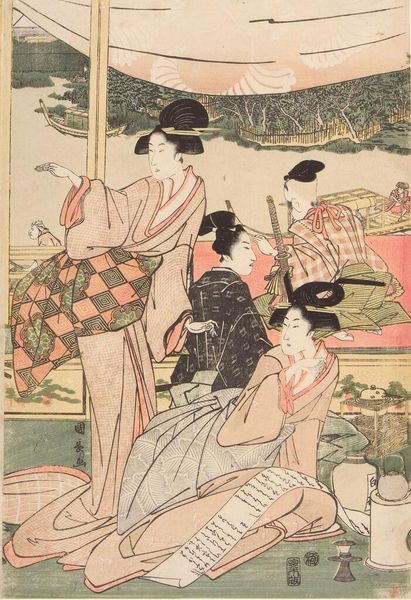 Editor: This is Utagawa Yoshitsuya's woodblock print, "Shin Yoshiwara Magic Scene." It's packed with bizarre imagery. I’m getting a chaotic vibe. What do you make of it all? Curator: It’s a topsy-turvy world, isn’t it? I see a commentary on social hierarchies. The rodents, dressed as humans, enjoying the spoils while the humans are in disarray. Imagine the artist chuckling to himself as he carved this. What does the inversion of roles suggest to you? Editor: Maybe it's poking fun at the elite? Like, even rats can live large if they're in charge. Curator: Precisely! Or perhaps a darker reflection on the fleeting nature of power. Made me think of my cat, Mittens, she thinks she owns the place. Editor: I'll never look at woodblock prints the same way again. Curator: Me neither, and I've been doing this for years!