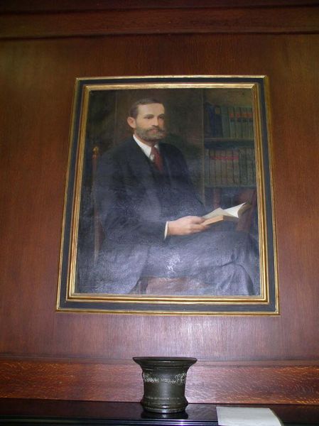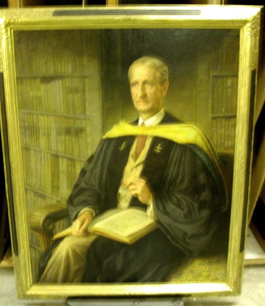Editor: This is Blanche Ames Ames's portrait of George Lincoln Goodale. I'm struck by the texture of the paint and the material of his academic robes. What can you tell me about the painting's production? Curator: Given Ames’s background, I find the material choices fascinating. The canvas itself, the pigments selected, and their application all speak to the means available to a woman artist within the constraints of her time and social standing. Consider the implied labor and resources required. Editor: That's a great point; I hadn't thought about the materials as a reflection of the artist's position in society. Curator: Exactly! By considering the material aspects, we see beyond a simple portrait to the wider social and economic structures at play. Editor: Thank you. I’ll never look at portraits the same way again.
