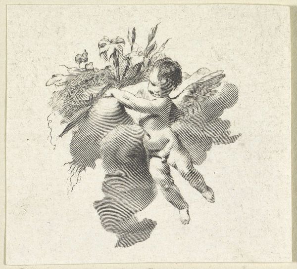 This is Coen Metzelaar's pen drawing, titled 'Sculpture consisting of three figures'. Metzelaar was a Dutch artist, working in the mid-19th century in the Netherlands. The drawing offers us a glimpse into the world of classical sculpture through the eyes of a 19th-century artist. At the top, we see a muscular, crouched figure, seemingly straining under an unseen weight. Below him, nestled amongst foliage, are two intertwined figures, perhaps lovers, evoking themes of intimacy. The juxtaposition of the straining figure and the embracing lovers creates a dynamic tension. How might we interpret these figures in relation to each other? Does the straining figure represent the burdens and trials that love can bring? Or is it a symbol of the strength that supports and protects love? It challenges the viewer to consider the multifaceted nature of relationships, and the complexities of human experience.