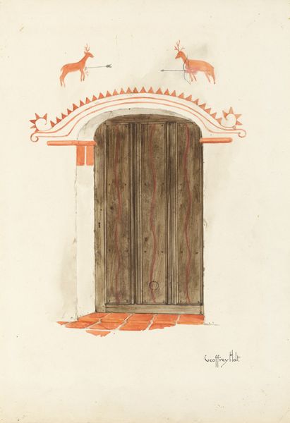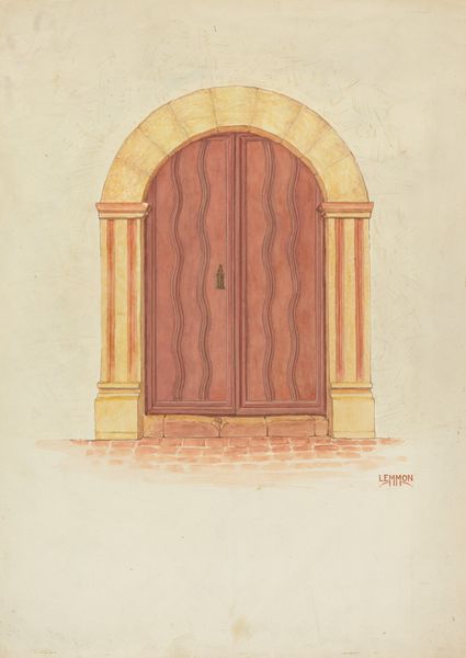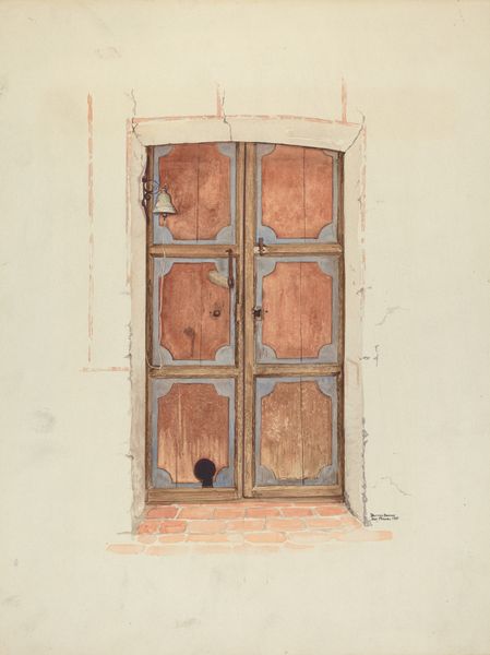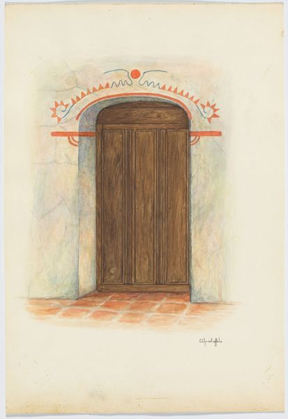 Editor: This drawing, titled "Doorway," was created in 1937 by Dayton Brown, employing both watercolor and drawing techniques. The detail is striking; the artist meticulously renders this aged wooden doorway, and I'm really drawn to the worn, almost crumbling facade. How do you see this artwork through the lens of its time and place? Curator: It's interesting that you notice the decaying façade. Brown created this drawing during the late Depression era. Considering the social and economic realities of the time, what do you think it meant for an artist to focus on documenting, with such detail, a slightly decrepit, probably abandoned, doorway? What purpose might this choice serve, socially and culturally? Editor: Well, perhaps there’s a commentary on lost grandeur? A recording of what’s being lost, what’s being forgotten? Or perhaps the artist simply appreciated the aesthetic value of aged architecture? Curator: Those are great points. There's a distinct possibility the artist saw value in recording architectural forms representative of another moment in American history, architectural choices that were perhaps fading or being intentionally removed as cultural tastes shifted. And who determined those tastes, right? Museums, galleries, schools of thought… They influence how people experience art and life. Is that something you’re interested in, or think about often? Editor: Absolutely! It makes me consider how artworks get chosen, who is remembered, and why certain images persist through generations. Curator: Precisely. Looking closely at art like this forces us to question the power dynamics at play in defining historical and artistic importance. This doorway may seem like a simple subject, but it holds within it broader conversations about memory, value, and the forces that shape our perception of the past and who shapes those perceptions. Editor: It’s so helpful to consider how museums and galleries reinforce certain ideas through what they choose to display and emphasize. Now I feel like I’m looking at it with new eyes. Curator: And, really, isn't that the true point of exploring any artwork?
