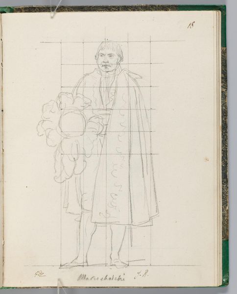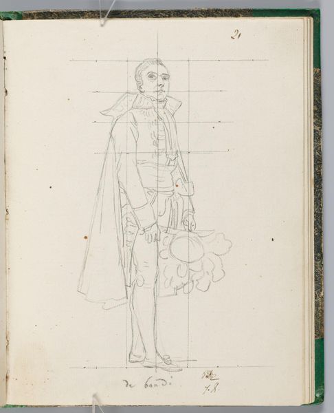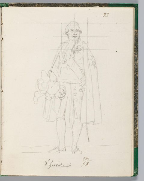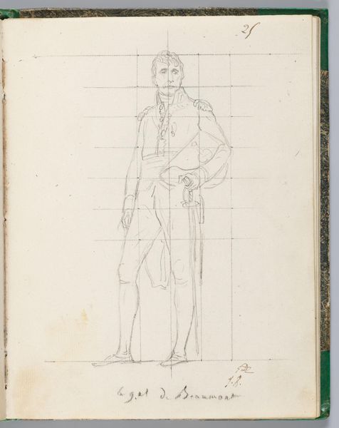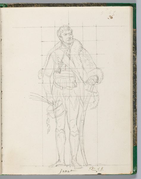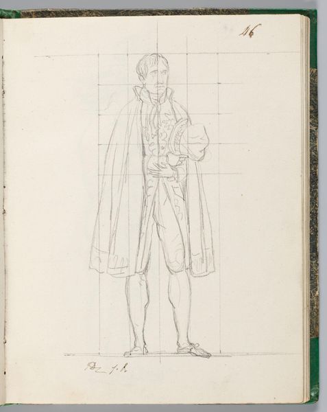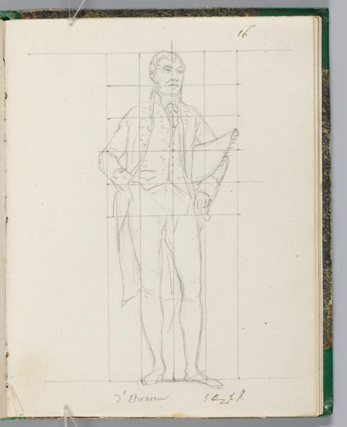 Editor: Here we have Jacques-Louis David's drawing of Comte de Rémusat. It looks like pencil on paper. I'm struck by the grid and how David used it to construct the figure. What do you see in this work? Curator: The materiality of this sketch illuminates David's process. Notice the visible grid – a tool for controlling the image, ensuring proportion and accuracy. But also consider the social context: David, a supporter of the Revolution, later serving Napoleon. How does this labor, this act of sketching a courtier, reflect the shifting power dynamics and David's own navigation within them? Editor: So, the grid is a tool, but also a signifier of control in a changing political landscape. Curator: Precisely. The very act of rendering the Comte, within this structured framework, highlights the complex relationship between artist, subject, and the prevailing social order. Editor: That gives me a lot to think about. Thanks! Curator: My pleasure!