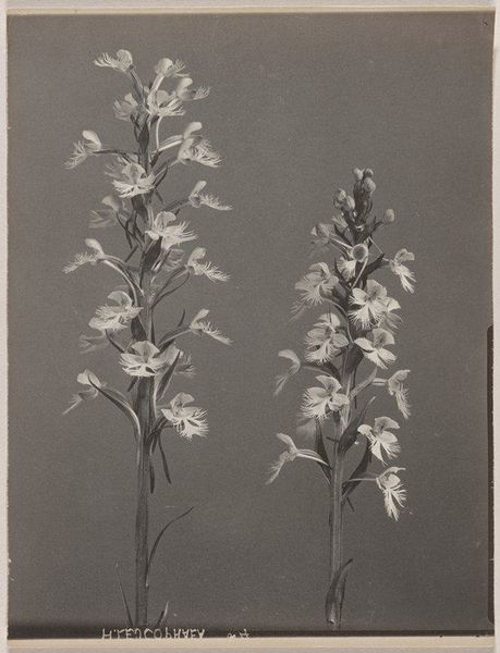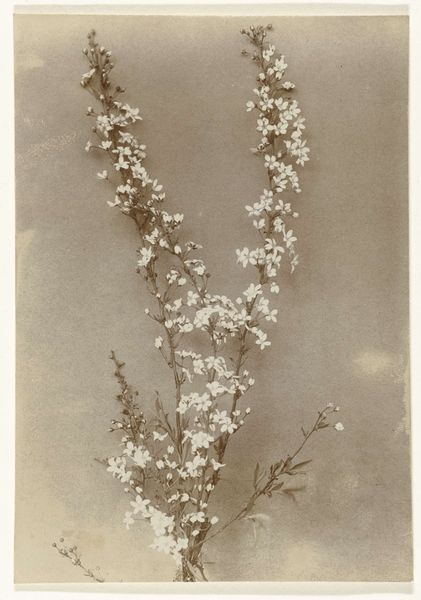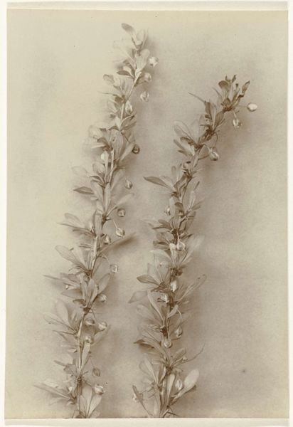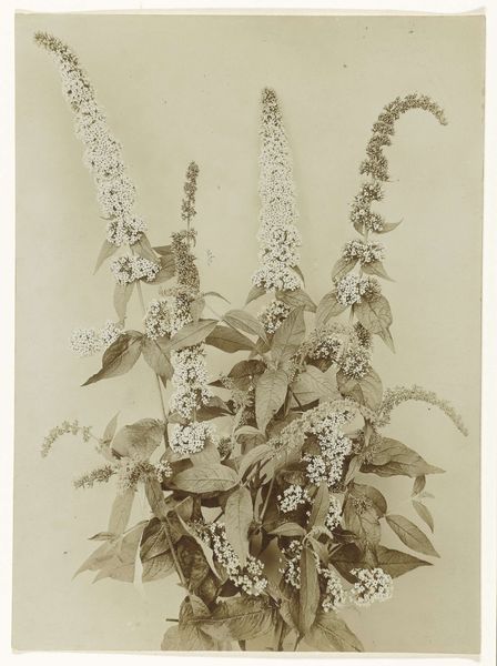 Editor: This is Richard Tepe’s "Spierkruid in bloei", created sometime between 1900 and 1930. It’s a still life photograph, simple in its composition, but really elegant in its subject matter. What jumps out at you when you look at it? Curator: I’m drawn to the process here. This is Pictorialism, which aimed to elevate photography to the level of fine art. Look at how the artist uses soft focus, blurring the line between the industrial production of photography and a handcrafted, artistic print. Editor: So, you see it as a kind of rebellion against industrial photography? Curator: Exactly! It challenges the notion of photography as purely mechanical reproduction. Tepe manipulates the process. This is evident in the materials, he experiments with techniques like dodging and burning in the darkroom, effectively "sculpting" with light. The choice of subject matter also plays a part, still-life became about not just the aesthetic of the floral scene, but also of labour of making something like it. How do you see its consumption during the time period? Editor: It makes me wonder about access. Was this kind of art only available to the upper classes, those who could afford photography equipment and appreciate fine art? Curator: That's a very astute point. It opens up questions about the socio-economic context of artistic production. The consumption of such imagery reflects a certain social stratification, where leisure and appreciation of art were often associated with privilege. We tend to discuss a lot about what goes in its making, but we should also question who has the means to commission, buy and enjoy it, at that time period. Editor: That's really made me rethink what I initially thought was a simple still life. Thanks! Curator: And you've pushed me to consider the image's social impact beyond its material creation. It's all about labor, access, and the consumption of beauty!