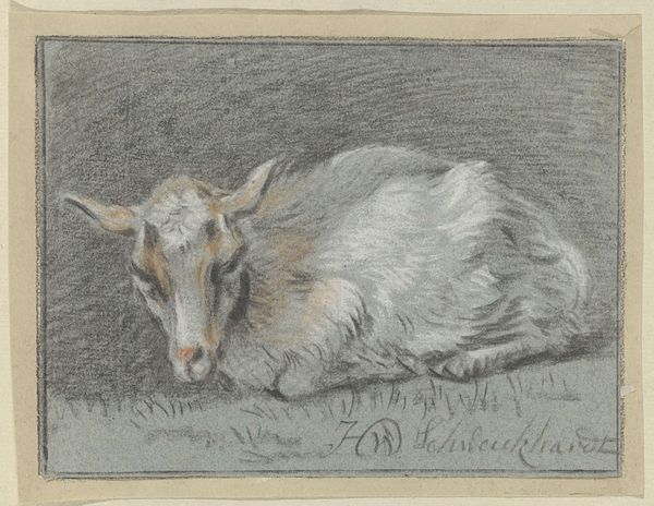 Curator: Here we have "Standing Goat, Facing Right" by Jean Bernard, created sometime between 1775 and 1833. It's a pencil drawing currently residing here at the Rijksmuseum. Editor: It has a serene, almost melancholic quality, don’t you think? The way the pencil work renders the texture of the goat's coat is really interesting; you can almost feel the coarseness. Curator: Indeed. Bernard's work, like much of the art of this period, reflects a growing interest in naturalism and the depiction of animals, influenced by Enlightenment ideals about understanding the natural world. These depictions found their way into broader cultural narratives about nature and society. Editor: It strikes me that the labour of producing these kinds of detailed drawings served as a crucial tool in scientific investigation as well. The material act of drawing helped translate direct experience with this particular animal, the paper, the pencil, all come together to make this rendering exist. Curator: Precisely. Drawings like these played a significant role in scientific illustration, becoming documents themselves and finding use as source material. We often overlook their importance, but even casual sketches could contribute to developing visual vocabularies. Editor: Looking closely at the marks on the page, one could almost retrace Bernard’s labor, seeing the small marks coalescing into a whole form and all those marks serve as some form of evidence. Also, you can almost feel how valuable animal depictions were at the time, almost acting like a commodity due to how rarely citizens came across such sights. Curator: Well said! This ties into how the animal has, over time, functioned symbolically across visual culture as both figures of labor and, also, rural abundance and how they've changed under our contemporary view on animals and nature. It offers insights into evolving perceptions of labor, pastoral life and representation. Editor: It makes you wonder what Bernard intended for this piece. Was it purely observational, commissioned, or did he have a larger narrative in mind for his patron audience at the time? Curator: Regardless, this humble goat drawing offers a surprising glimpse into the intertwined histories of art, science, and society during a period of profound change. Editor: A quiet testament to the value of attentive observation. A truly fascinating depiction to ruminate over when looking at shifts in technique and how labour is valued over time.