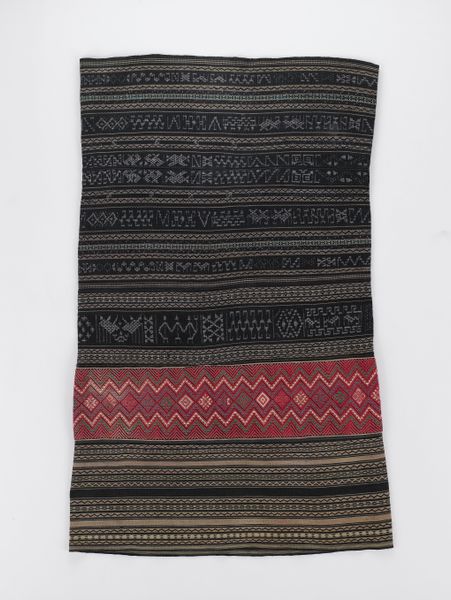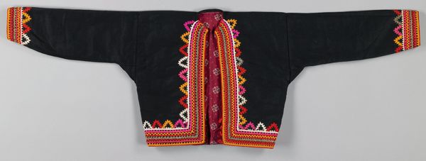 Curator: Looking at this object, I’m immediately struck by its simple elegance. The piece we are looking at today is a cotton blouse, likely created sometime in the 20th century. The garment is currently part of the collection at the Minneapolis Institute of Art. Editor: There’s an interesting somberness about it, though. The dark fabric punctuated by these repetitive geometric shapes gives the impression of a night sky full of distant stars. It has this visual weight and presence—far beyond that of a simple article of clothing. Curator: That sense of visual weight likely comes from the weaving technique itself. The textile construction would involve careful and time-consuming work to get those repeated geometric shapes. I wonder about the weaver's labor and what material constraints they were working under. Editor: Right, and understanding who wore it and for what occasions becomes equally crucial. Was it an everyday garment, a ceremonial piece, or a signifier of status within a community? The object's visual design could signify particular socio-cultural values or events through these repeated star patterns and dark colors. What political events occurred when this piece was constructed and who was the audience for such an item? Curator: Exactly. We're moving beyond just admiring the design and beginning to think about its purpose. What was the intent and what statement, if any, was meant by it in its socio-political context? What part did the consumption and sale of such materials have? It all leads back to production and the labor involved. How does an institution, like Mia, transform and shift the consumption and placement of an otherwise ordinary, practical object? Editor: Ultimately, what we're seeing here isn't just a piece of clothing; it's a convergence of artistry, skill, and societal forces distilled into woven fibers. The exhibit contextualizes the place and power this simple object had in the world when constructed, as well as now. Curator: Indeed. By examining the cotton, construction, and use of it, we can better assess its function in material and socio-cultural ways.